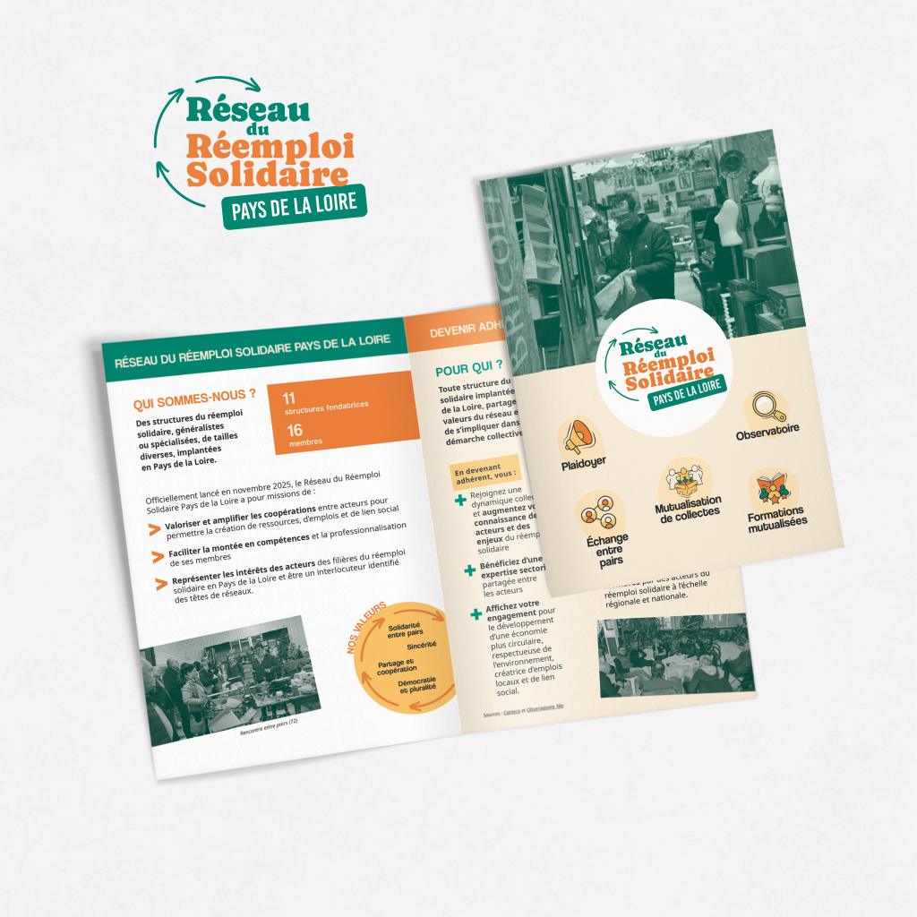 Lancé en novembre 2025 par 11 structures ligériennes du réemploi solidaire (La Ressourcerie du Transistore, Patmouille, Aspire, Recyclerie Nord Atlantique, Trocantons, Envie ERG, Emmaüs Saumur, Recyc’la vie, Fil d’Ariane, Siléo, La Ressourcerie des Biscottes), ce réseau régional compte désormais 8 nouvelles structures : Le Réservoir, La Récupérette, La Ressourcerie culturelle, Monde Solidaire, Le Petit Lieu, l’Atelier de Réparations Collectives, Recycle et Don et Emmaüs Angers.