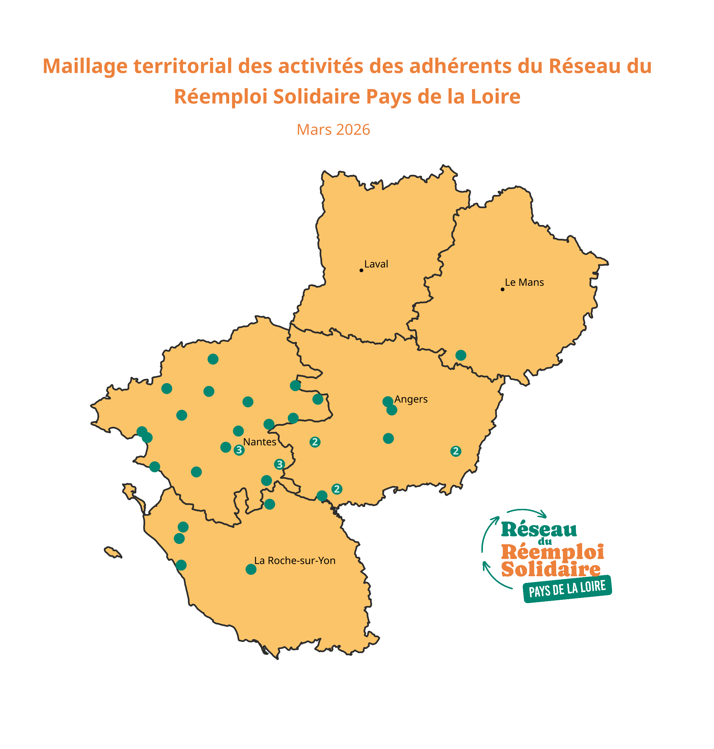 Lancé en novembre 2025 par 11 structures ligériennes du réemploi solidaire (La Ressourcerie du Transistore, Patmouille, Aspire, Recyclerie Nord Atlantique, Trocantons, Envie ERG, Emmaüs Saumur, Recyc’la vie, Fil d’Ariane, Siléo, La Ressourcerie des Biscottes), ce réseau régional compte désormais 8 nouvelles structures : Le Réservoir, La Récupérette, La Ressourcerie culturelle, Monde Solidaire, Le Petit Lieu, l’Atelier de Réparations Collectives, Recycle et Don et Emmaüs Angers.