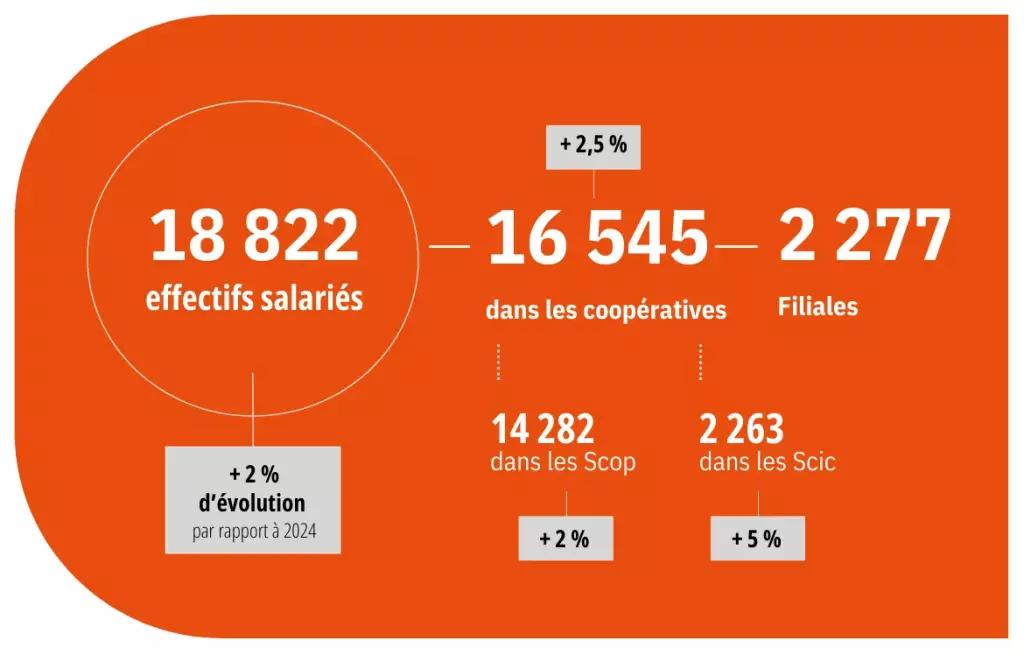 L’ambition fixée en 2021 était de passer de 13 600 à 17 680 salariés coopératifs à l’horizon 2025. En 2025, 72 % de l’objectif est atteint.