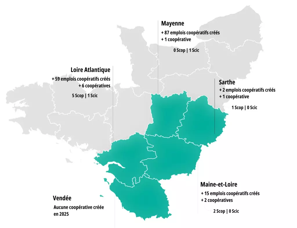 - Pays de la Loire : 8 741 emplois coopératifs (+3 %)