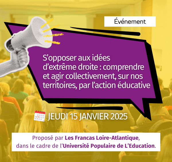 Attachés à leurs valeurs d’humanisme, d’égalité, de liberté, de solidarité, de laïcité et de paix, les Francas s’opposent fermement aux idées d’extrêmes droites, qui remettent en cause, l’état de droit, les libertés individuelles, la séparation des pouvoirs, le droit au recours tout en prônant une vision inégalitaire du monde. C’est sur ces sujets que les idées d’extrême droite se structurent. Elles se diffusent par une classe politique, relayées par des médias organisés auprès de l’ensemble de la population, jeune et moins jeune. En dehors d’une opposition partisane, les Francas souhaitent, au travers de ce temps fort, contribuer à promouvoir des perspectives éducatives émancipatrices, accordant une large place à la dimension collective, dans une société de justice sociale favorisant l’épanouissement de tous et toutes. Cette Université Populaire de l’Éducation sera l’occasion de s’informer/se former, de s’interroger, de partager, d’échanger sur ce sujet et contribuer, via des regards croisés et expériences multiples, au déploiement d’actions sur nos territoires respectifs. Il s’agit d’une journée avec des temps d’échanges et d’apports. 👉 Pourquoi participer à cet événement ? Prendre part à cette Université Populaire de l’Éducation, c’est se donner un temps pour comprendre les mécanismes à l’œuvre dans la diffusion des idées extrémistes, prendre du recul, enrichir ses connaissances et renforcer sa capacité d’action éducative. C’est aussi l’occasion de rencontrer d’autres acteurs et actrices des territoires, de partager des expériences, d’explorer des pistes concrètes et de construire ensemble des réponses collectives, adaptées à nos réalités locales. En participant, chacun et chacune contribue à nourrir une dynamique commune, tournée vers l’émancipation, le vivre-ensemble et la construction d’une société plus juste.